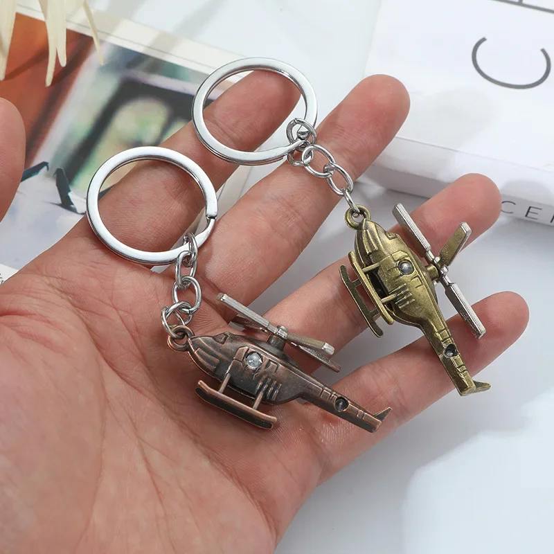 Creative Helicopter Keychain Metal Combat Aircraft Model Keyring Fashion Car Key Waist Buckle Pendant For Men Teens Pilot Gifts